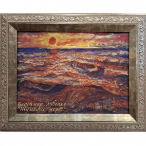 Шумящее море на закате солнца Цена: 22 000 руб. шт. техника: авторское жикле размер: 34,5 * 25,5 материал: холст/ акрил