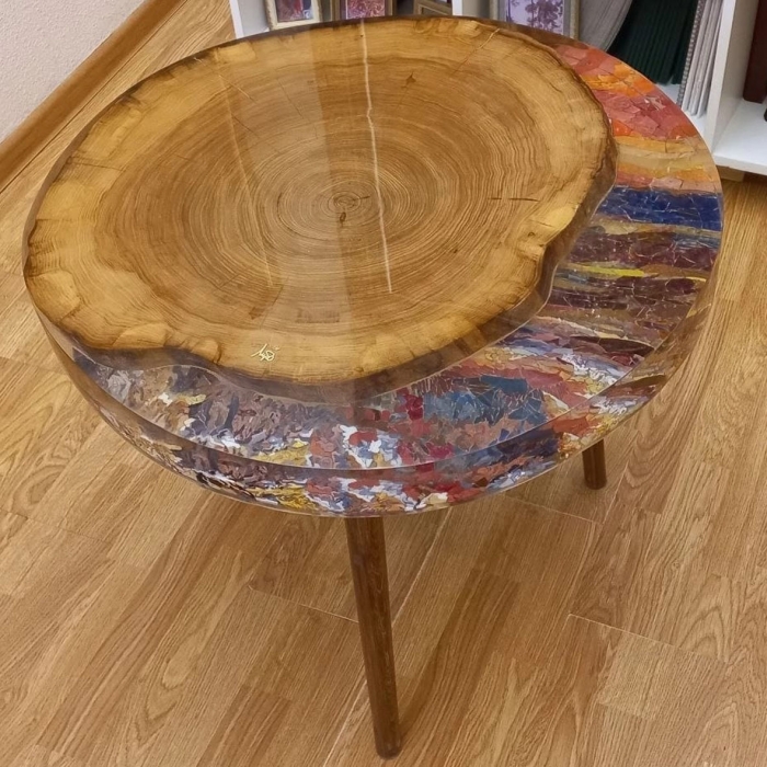 техника: смешанная/ спил натурального вяза, мозаичный набор, эпоксидная смола